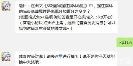 今天问题的答案是11%,玩家们只要回复kp11%即可。回答正确之后,就能领到你们想要的礼物啦。