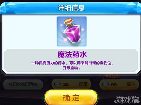 小编先来介绍下魔法药水,它是一种具有魔力的药水,可以用来解锁新的宝物位、还能用来升级宝物哦。玩家们手中如果有多余的闲钱的话,也是可以购买药水的哦。