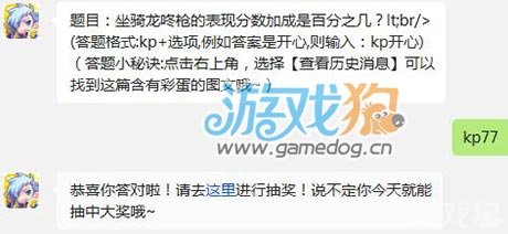 这道问题的答案是77,玩家们只要回复kp77就可以了。回答正确之后,就可以来领大奖啦。