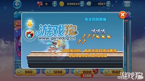 花剑少尉技能发动时,角色无敌得分更高,表现分加强,金币变为高分配饰。未来少年能将超能少年的属性提高到130级,角色技能是:可以穿越到超级奖励关,还会四连跳!在“穿越奖励”关卡内,拥有高分少年大头像;长脚宝箱会变成高分豆豆。