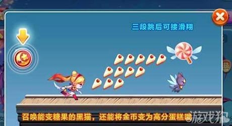 发动技能可以将金币变成高分蛋糕,同时召唤黑猫清除障碍物。