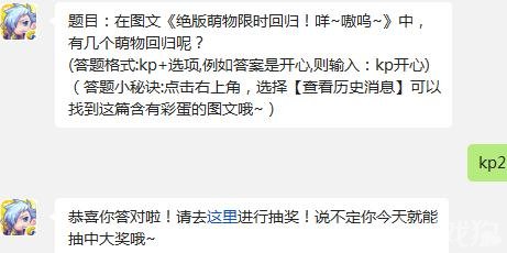 今天问题的答案是2,玩家们只要回复kp2就可以啦。下面就赶紧回复答案,领超大礼物哦。