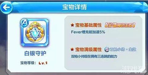 基础属性随着宝物等级的提升效果会增强。和精灵、宠物不同,宝物的基础属性一般会对满足某个特定条件的角色生效,比如:连跳型角色、滑翔型角色等等,也有一些宝物是对所有角色生效的。基础属性除了普通的得分加成,还有Fever槽充能加速这样的特殊效果。