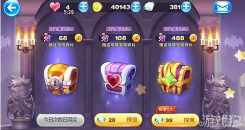 那么宝物要怎么才能获得呢?答案就是“探宝”了!每天可以有三次金币探宝的机会,可以获得普通宝物碎片或者魔法药水,而钻石探宝则没有次数限制而且可能可以拿到高级宝物碎片哦。花费99钻石探宝四次最为划算哦~
