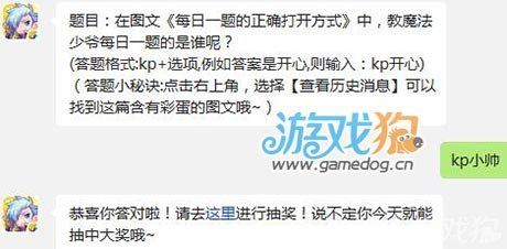 今天问题的答案是kp小帅,玩家们只要回复kp小帅就可以啦。回答正确之后,就能领超级给力的大奖啦