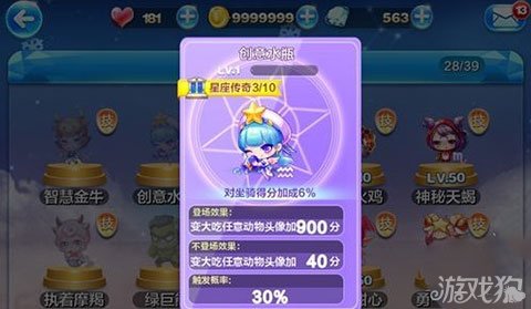创意水瓶的的属性是变大吃任意动物头像加分,熊队长的属性是超级奖励得分增加60%