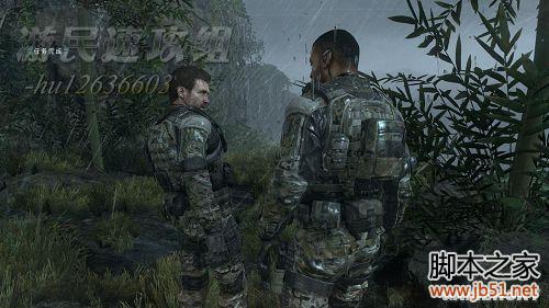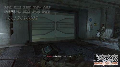 然后在通风管下面跟队友会合,触发一段动画,敌人居然有光学迷彩,近距离看是能看清楚的,在远处看的话就很难发现了。