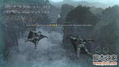 跟队友一起跳下悬崖,用鼠标来控制方向,注意别撞到山上了,跟随队友一起飞即可。