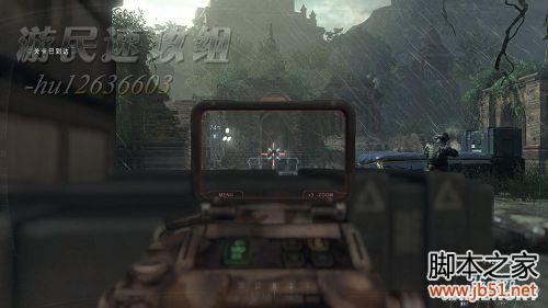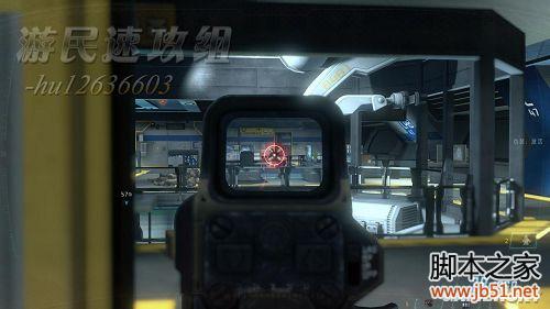动画一结束后直接开打,这瞄准镜可以透视,每秒会扫描一次,将瞄准镜视野内的敌人显示出来,太远的话是看不见的,这个对付光学迷彩非常有效。