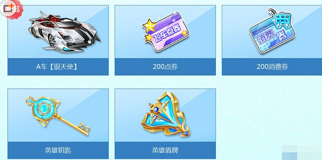 每天在【超能道具赛模式】下累计成功使用【寒冰地带】道具击中其他玩家2次,即可获得200消费券和1把【英雄钥匙】。注:只要使用1把【英雄钥匙】打开1个【英雄盾牌】,有机会获得永久A车【银天使】。活动时间:8.28-9.05.