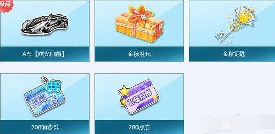 注:只要使用1个【金秋钥匙】打开1个【金秋礼包】,有机会获得永久A车【曙光伯爵】。