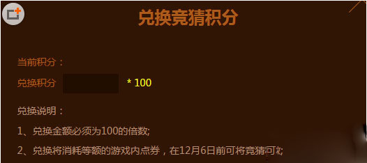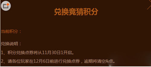 2、兑换将消耗等额的游戏内点券,在12月6日前可将竞猜积分兑换回点券。