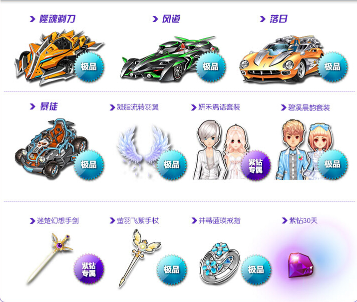 相关问题:QQ飞车中豪华紫钻任务具体是玩什么可以得到奖励
