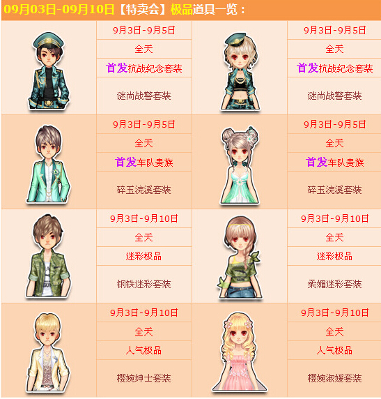 为迎接抗战胜利70周年,9月3日-9月10日期间,《QQ飞车》为广大玩家精心准备了抗战小特卖活动,诸多首发专属道具耀目来袭,盛会邀您共享!