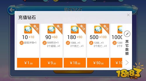 玩家们如果想要快捷的获得钻石的方法的,可以通过直接使用人民币充值购买钻石,玩家们点击相应的充值数就可以进入钻石购买界面,有多种充值套餐进行选择。