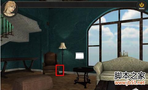7.点击沙发后面的古典烛台,然后打开烛台旁边的机关盒。根据机关盒上面的竖式和已经呈现的数字284,经过推测,就可以知道竖式是“289+764=1053”,然后输入密码“1053”,就可以拿到里面的小曲别针。