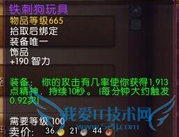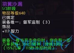 每分钟0.92次,65秒触发一次,606MP5,常驻190智力约4%治疗效果。英雄模式,史诗模式还有很大的提升空间,所以必将成为黑石最好的治疗饰品。