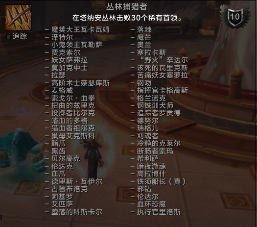 魔兽世界塔纳安丛林稀有怪成就丛林追猎者具体位置坐标