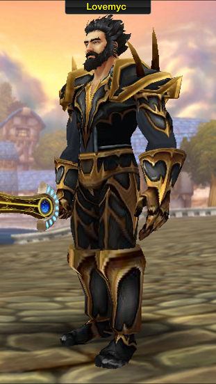 然而,有这样一套板甲幻化,似乎很少有人知道,因为这是一套小众幻化,也是卷毛我一次逛拍卖行时,无意间发现的。这样的板甲幻化,存在于角落里,以黑色为主色,金色为镶边,低调中,尽显高贵!来,先一睹尊容:
