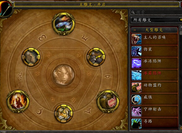 我保留了常驻的2个雕文,爆炸和毒蛇,第3个雕文我换成了伪装,这样可以让对面不清楚我的位置,让我拿先手,321,MS找个柱子站好了,上盾不上意义不大,因为法师也会偷的,猎人要做的就是躲在一个隐蔽的地方等法师,法师出来了,先不要急着打,位置摸过去,大概30码了,脚下直接裸冰一个冰冻,角色站在冰冻前面一点点抽FS,黑箭,乌鸦,爆炸,奥数,OK,几个DEBUFF上去了,我不追,等DZ,DZ吃了冰冻。