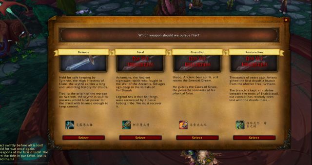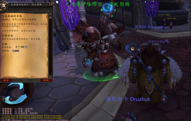 故事从主城达拉然开始,与大德鲁伊哈缪尔•符文图腾对话,带我们去月光林地参加一个重要的仪式。