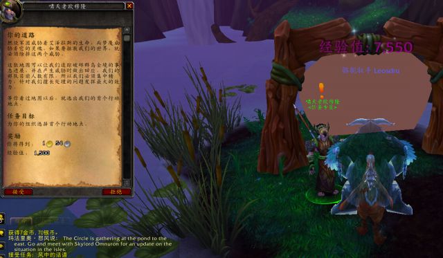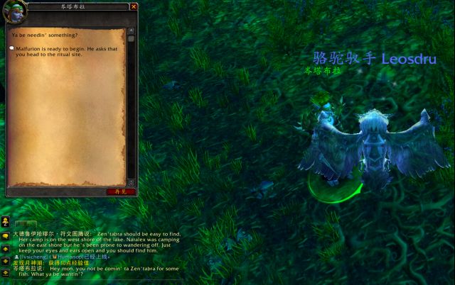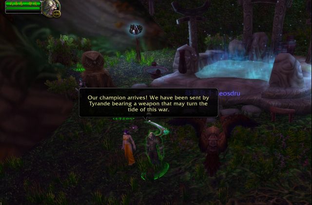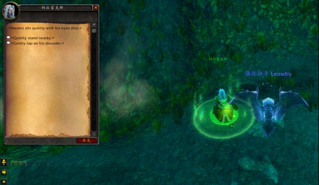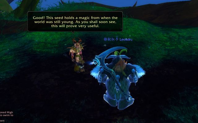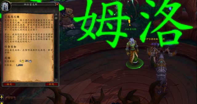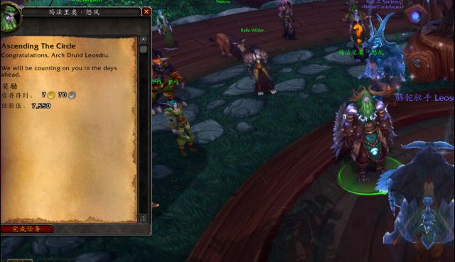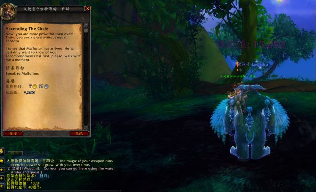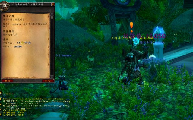 寻求月光林地中两位德鲁伊的帮助,告知他们一起去开启仪式。两位npc分别在湖的东岸和西岸,其中一位还喜欢到处乱转。