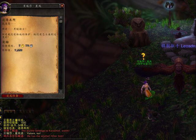 瓦洛恩在叮嘱我们一番后,准备将艾露恩之镰交给我们,但是,黑暗骑士突然出现,杀死了瓦洛恩,抢走了镰刀。(黑暗骑士喊的是:艾露恩之镰属于卡拉赞)