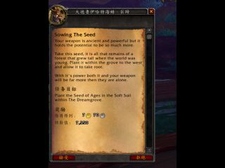 拿到艾露恩之镰后,我们返回梦境林地,大德鲁伊交给我们纪元之种,与艾露恩之镰结合,大德鲁伊会教你如何强化神器等等。