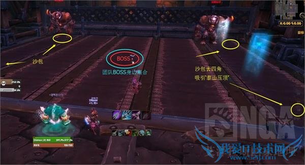 “泰山压顶” 安排2-4名‘沙包’站在场地的四角,BOSS会在他们之间跳跃;