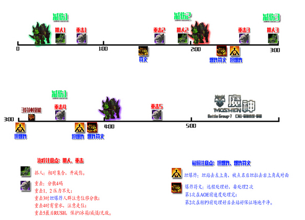 时间轴的解释和战术安排如我史诗不同点里所写的BOSS阶段,在战术图中也在BOSS阴影备注了不一样的颜色来代表所吸收的能量。
