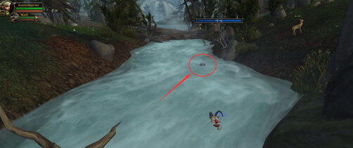 可以在小河内看到一个流动的宝箱。是的,这个宝箱会流动!