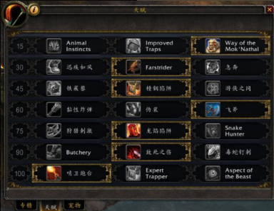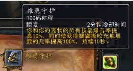 猛禽一击(25集中 8码范围 瞬发):一次险恶的攻击,造成150%武器伤害的物理伤害。猎人版英勇打击。