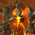 这个Boss会不断的召唤一种叫“不稳定的熔渣元素”的小怪。这种小怪不会攻击,而是一直向旁边的熔渣走去,它们吃一切控制,包括减速,昏迷,改变位置的技能等。英雄模式可以做到控制小怪然后直接Rush掉Boss,但是挑战模式依然需要击杀一些小怪。