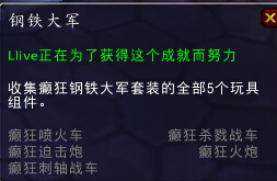 通过飞行坐骑飞越塔纳安黑暗之门时,会遇到3个新的精英怪,这些稀有怪会掉落3个新玩具,这些玩具集齐后会获得一个新的成就:钢铁大军。