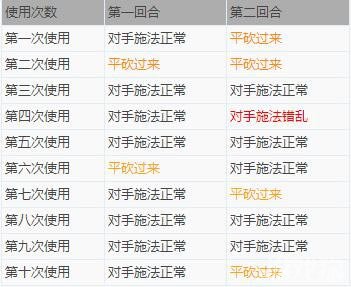 一共使用了10次20回合,其中中了无魂平砍过来6次。施法错乱一次。13次正常。