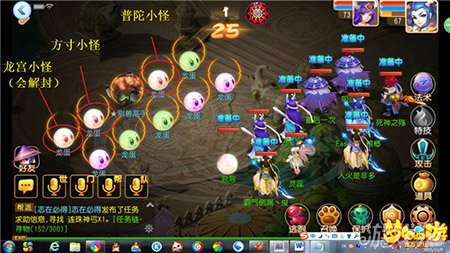 剩下的基本就没什么可以说的,就是加血慢慢磨,大唐每过2回合秒杀一个小怪就可。方寸主要先封印龙宫小怪。