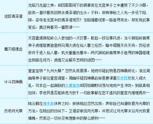 此外,成功完成任务时, 每名玩家有一定几率获得道具“法宝任务书”,使用后可以领取到该人物等级可以使用却尚未获得的法宝任务。