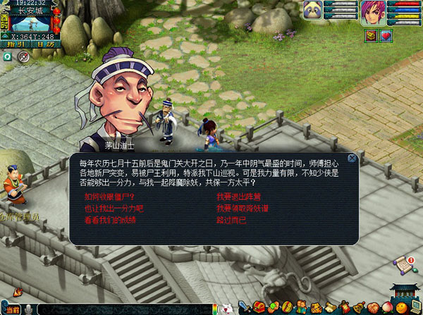 活动期间,玩家可以到长安城(258,94)寻找僵尸王加入僵尸阵营,或者到长安城(360,250)寻找茅山道士加入道士阵营。加入阵营后,即可学习阵营专属技能。
