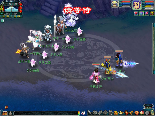 活动期间,玩家(等级≥50级,队伍人数≥3)前往长寿郊外(22,51)附近超度文臣武将之魂。