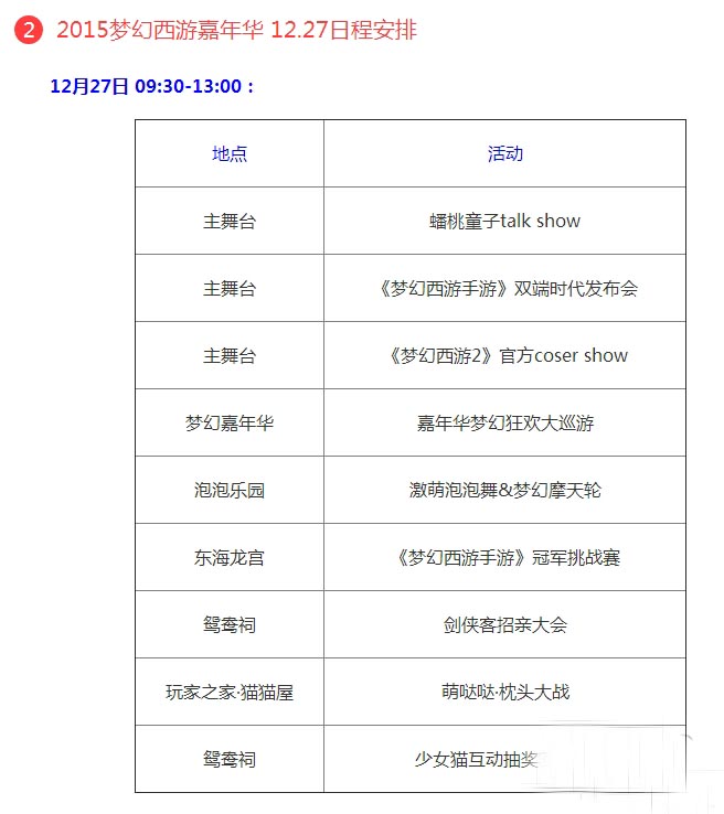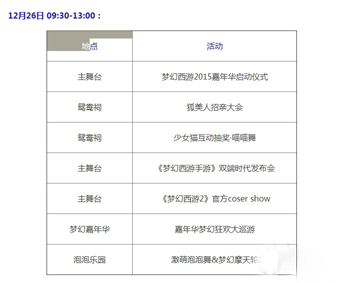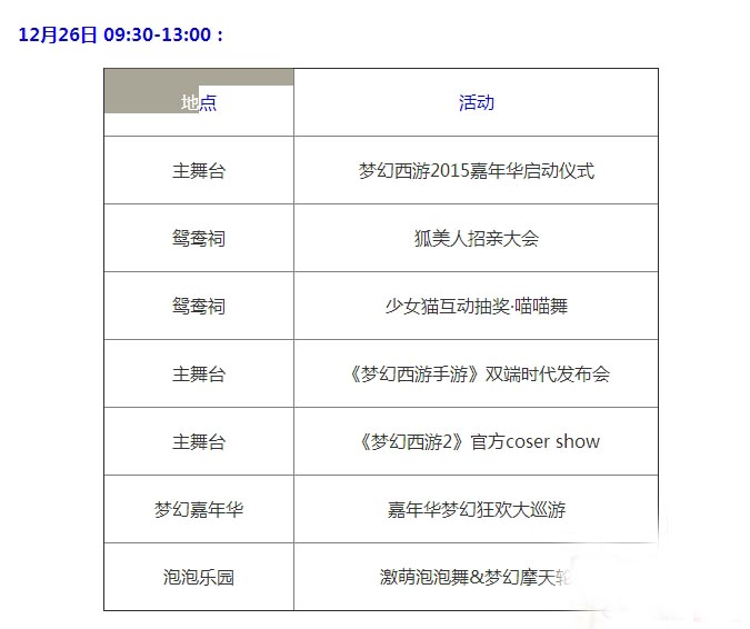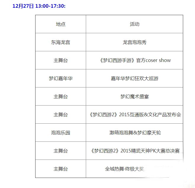 梦幻西游2 2015年梦幻西游嘉年华12.26-12.27 日程安排