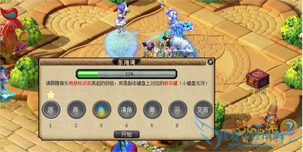 该玩法非常简单,第一张表示给予的乐器,每一个选项上交的乐器代表难度,比如我上交了“编钟”,那么我可以玩三星的难度,完成后获得奖励自然会很丰厚。如果我上交的“钹”,那么我能玩的是一星的难度,那么奖励自然没有三星难度的那么高了。具体玩法上面已经介绍的很清楚,点击开始,上面七个音阶里面会有一个亮起,这时候迅速按下对应的数字键(按小键盘无效,也可以直接用鼠标点击,但反应会非常的慢)。比如说“清角”(4)亮起来了,我迅速按下数字键4,完成。组队玩法也是一样,和单人一样,不同的是组队下,五个人可以一起玩“音乐PK”,看谁厉害,谁的准确率高,那个人获得奖励就很丰厚了!还需要注意的是,一星的乐器长安城乐器店有卖的,其他的要自己去找其他玩家购买哦!