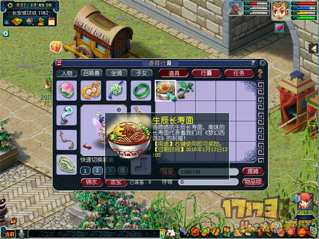 2015年12月18日,玩家当天首次上线,可获得香喷喷的“生辰长寿面”,快点来尝尝吧!