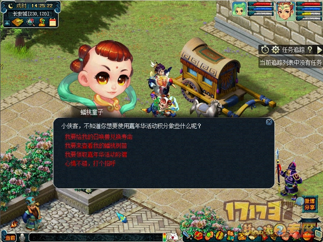 百果盛宴嘉年华蟠桃盛宴已准备就绪,盛宴之中,除了甘美香甜的蟠桃,还有各种鲜美的水果,各位少侠速来品尝!