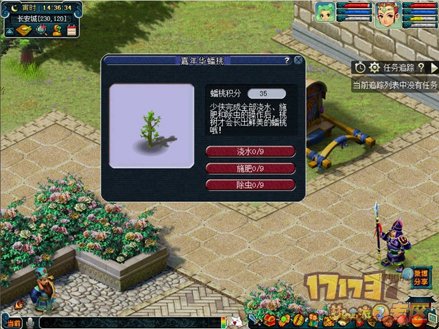 值此佳节之际,王母娘娘向各位三界才俊发放无数蟠桃树苗,希望有心之人得到树苗后能够勤加栽培。只要少侠用心坚持,定会结出美味的蟠桃。