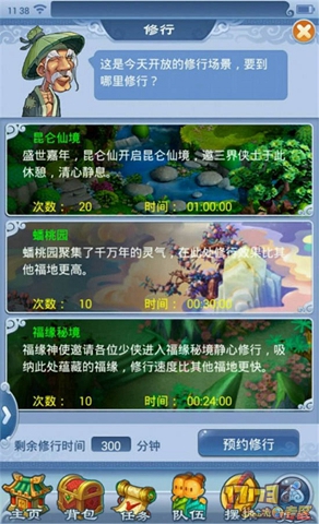2、每天每名玩家可以在昆仑仙境中修行5个小时,获得100次奖励,之后将不能再获得奖励。