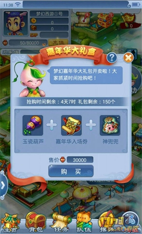 童子送礼嘉年华诞,三界同庆,蟠桃童子为庆贺嘉年华盛会的举行,特地为口袋幻境中的各位侠士带来了装满丰厚礼物的嘉年华礼盒。在通过童子一个小小的考验之后,就有机会从礼盒中抽取到仙童赠送的高级魔兽要诀、高级内丹、玄天残卷、五宝等珍贵奖励!