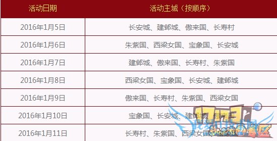 活动时间2016年1月5日维护后至1月12日12:00期间全天