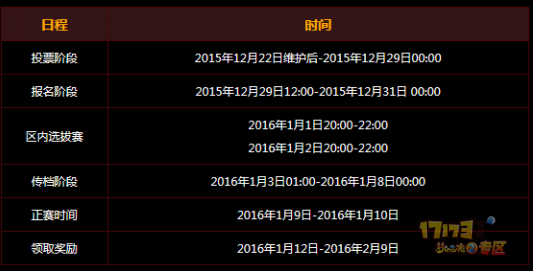 1) 投票排名前四的服务器获得正赛资格,第5-8名服务器为替补。替补服务器也获得报名资格,2015年12月29日12:00-2015年12月31日0:00为报名时间。