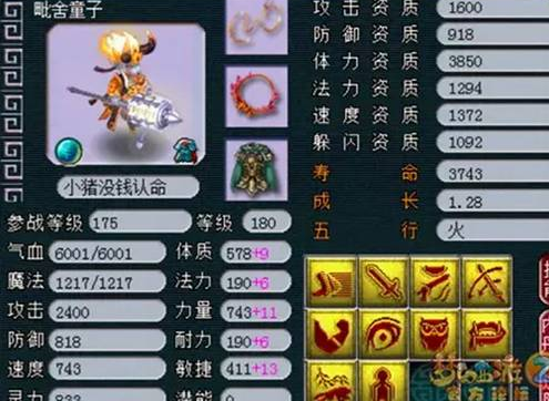 10技能高速隐攻童子,攻击资质1600!这只童子可是110灵性进阶的哦,看着它属性点后面附加的一列红字是不是很爽,它在拥有6000气血和2400攻击的情况下还能拥有743的速度,算上高级敏捷的话它的速度高达891!