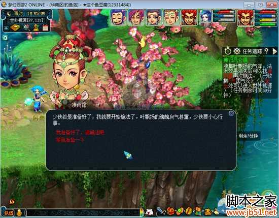 找到之后回去交任务,对话,会出现一个NPC“叶飘扬”,蜃气妖造型,对话,看个小动画,继续战斗。